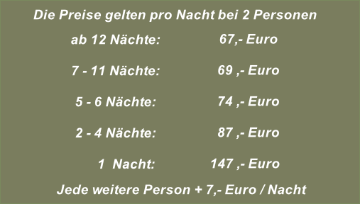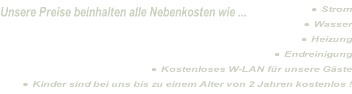 Für die Bereitstellungvon Bettwäsche und Handtüchern(auf Wunsch)berechnen wir einmalig7,- € pro Person.