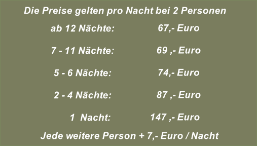 Für die Bereitstellungvon Bettwäsche und Handtüchern(auf Wunsch)berechnen wir einmalig7,- € pro Person.